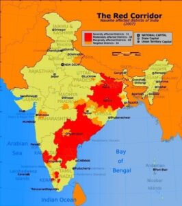 The Red Corridor had extended from Pashupati in Nepal to Triupathi in Tamil Nadu. The states that were fully or partially affected included were West Bengal, Jharkhand, Chhattisgarh, Madhya Pradesh, Bihar, Andhra-Pradesh, Telangana, UP, Maharashtra, Tamil Nadu, Kerala and Karnataka.